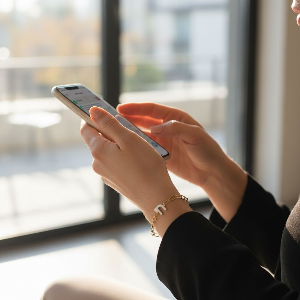 Enamel Chai on Gold Paperclip Bracelet